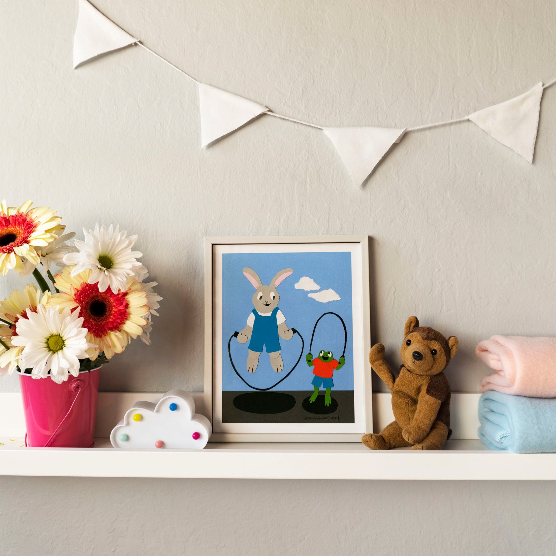 This rabbit and this frog became fast friends when they realized they both love to hop! Why not grab a jump rope and join them?