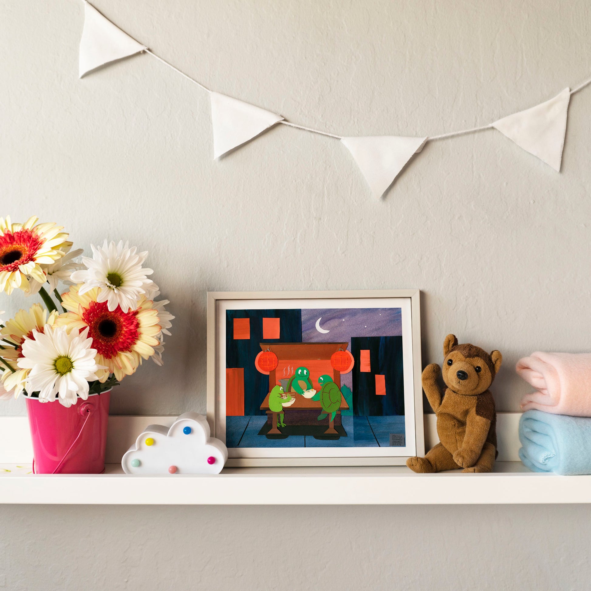 The Turtle Ramen Shop is a local gem—it's this frog and turtle's favorite place for a late-night meal!